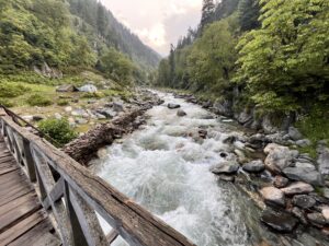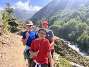 It is the trek to Marchoi Valley along the Marchoi Nallah with a few gradual ascent and descent stretches. The trail is so beautiful, with walnut and pine trees and the soothing sound of flowing rivers accompanying you along the entire trail. We had to pass many little streams along the way and kids were thrilled crossing them.