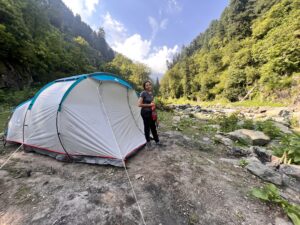 The alluring campsite at the Dumail at the river bank attracts beginners and seasoned trekkers, but it is still in its pristine form, untouched by commercial activities. We just sat at the river bank, played in the water, played Snake and Manners, played UNO….we did nothing, and yet we did everything. These are the moments we crave for. Bouncing river in front of us, calm wind, tall gigantic mountains protecting us in the valley and a cup of Kashmiri Kahwa…what more can you ask for…