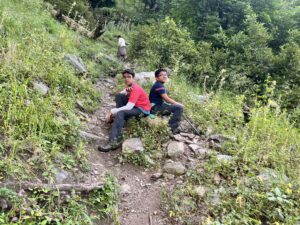 As we had started early, we reached at around 10:30 to Dumail. We had a little break there at the riverside, and we started our third-day trek on the second day itself.