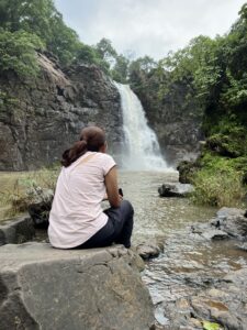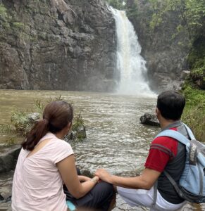 I was amazed by its enormity…We are like infinitesimal dots, and it was flowing so powerfully that our eyes, heart, and soul can not fathom its gigantism. Foamy water falling in the pool with a shower of fresh mist all over us, creating a mysterious surrounding. There is the story behind the fall. People believe that there is the footprint of Ninai Mata just beside the waterfall on the giant boulder, and that’s why the fall is known as Ninai.