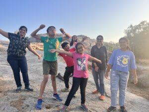 If you have planned up to point A, make 10 minutes additional beyond that point. This way, you can expand their boundaries and stretch their abilities. It will boost their confidence also that, yes! they can do a little extra. Our usual phrase is, “Bas five minutes more, and we will see what’s next?”. Mostly they start with a new mindset and go ahead for five more minutes. Satva has started the Tunganth trail with “How much more is left?” from the beginning to reaching first at the top with this five more minutes rule.