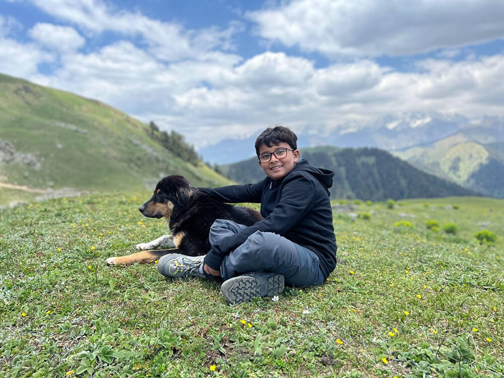 One mantra we have learned in the last year is if you want to have a successful hike, take as many breaks as they want. Just keep them short. Small water break. Small find a bug break. Small photo break. Small pat a dog break. Let them have all. They will notice more during these breaks only. Let them talk with fellow trekkers. We have noticed that they have become good conversation starters. They initiate it more confidently after each and every trek. And most of them happen during such breaks. Satva wants to have a pic with each one of them.
